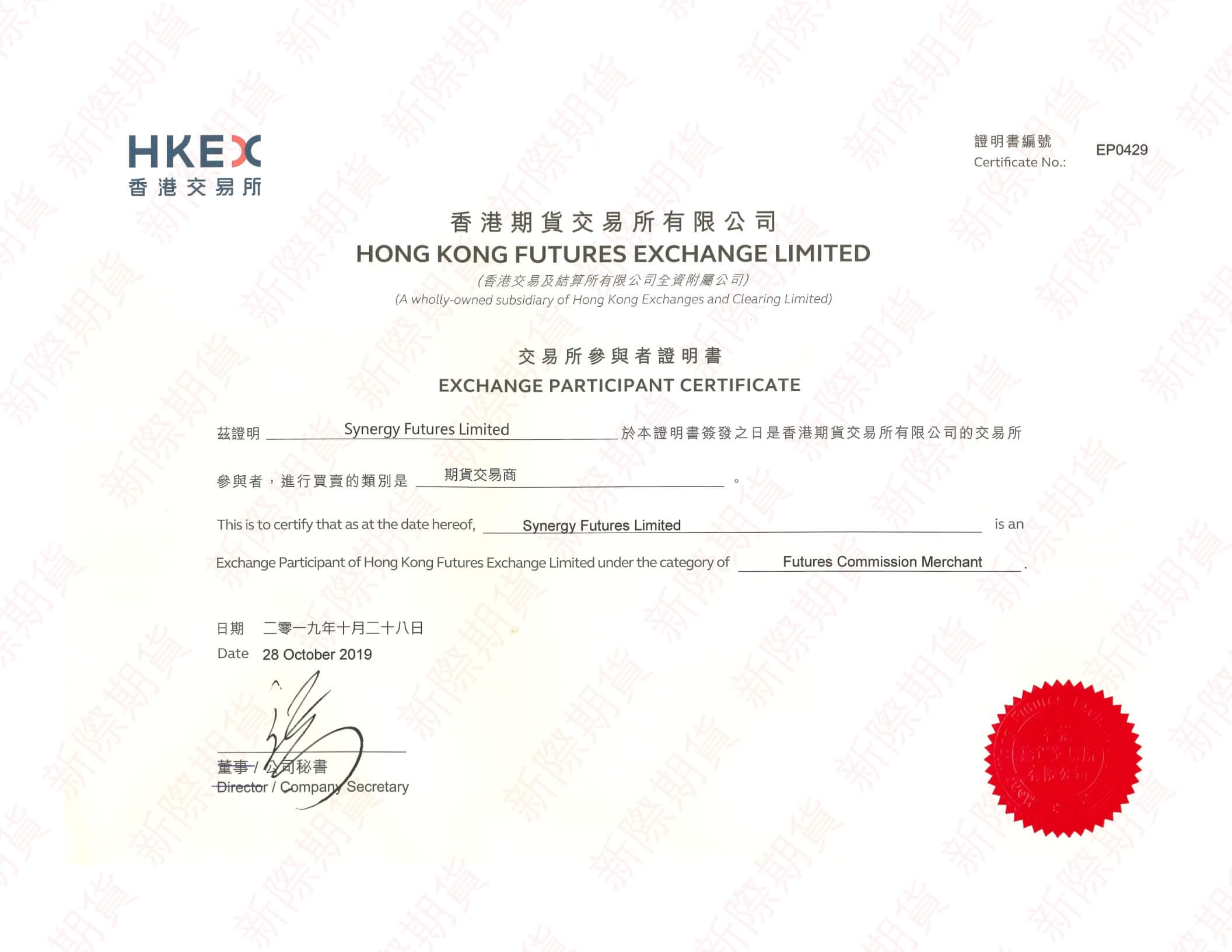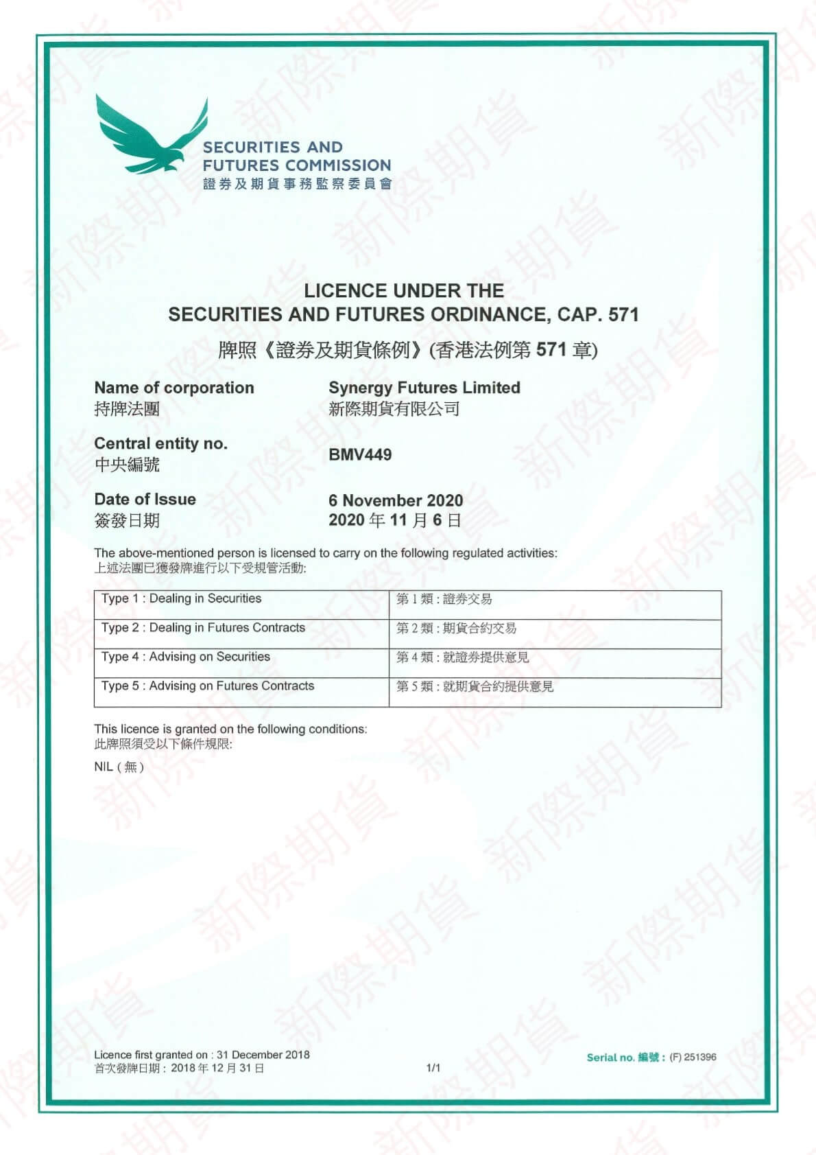 新际期货有限公司(Synergy Futures Limited)成立于2017年,于2018年获得由香港证监会颁发的第2类受规管活动牌照(期货合约交易),中央编号为BMV449。公司具备香港期货交易所参与者资格,能够提供香港及环球期货与期权市场的交易及风险管理服务。我们立足香港,背靠内地,面向全球。公司的主要管理人员具备丰富的期货行业工作经验,对境内外期货市场有独到见解。公司的股东为专注量化交易和高频交易的专业人士,技术能力突出,并对金融科技领域的新动向具有敏锐的洞察力。